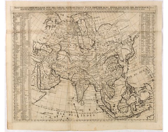Chatelain's map of Asia. The title is in two lines across the map. On each side border appears an index to the map's contents.